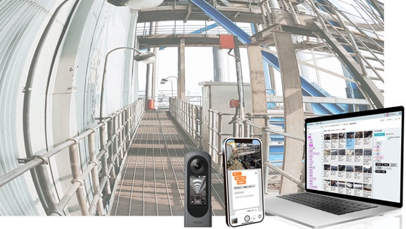 リコーは、2013年に世界で初めて*1ワンショットで360度撮影ができるカメラ「RICOH THETA」を発売以降、360度画像・映像を活用した事業の幅を広げてきました。現在では、360度画像・映像に関連するデバイスやソフトウェア、クラウドサービスを連携させることで、撮影からデータ活用までのワークフローを効率化するソリューションを提供し、業務効率化と生産性の向上を実現する「RICOH360」プラットフォーム事業を展開・強化しています。特に、建設業において、現場の進捗管理ツールとして360度画像が活用されています。
