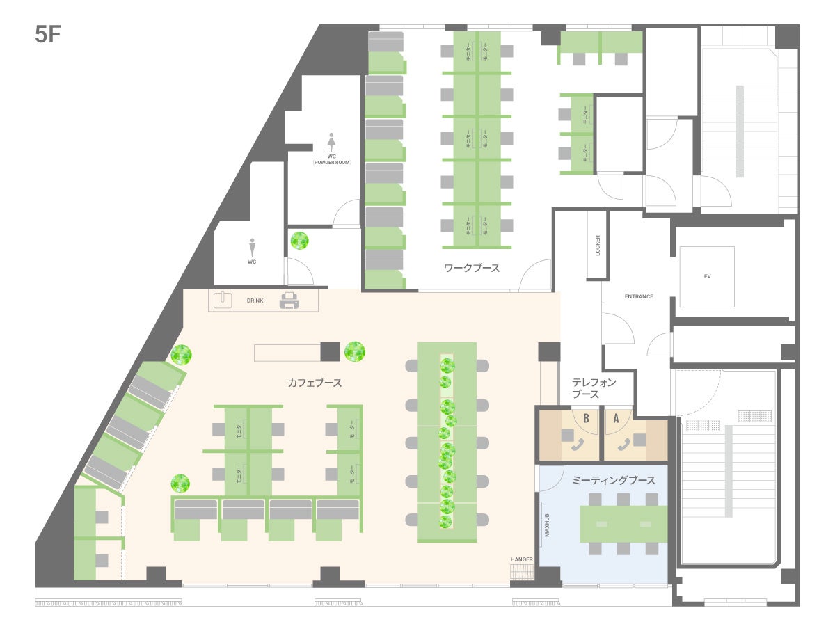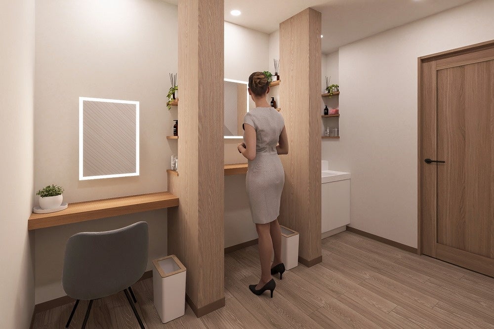 また、5Fの女性用お手洗いには広めの「パウダールーム」も用意しているため、打合せやWEB会議前の身だしなみのチェックができるなど、ビジネスパーソンに寄り添った嬉しい設備を提供します。