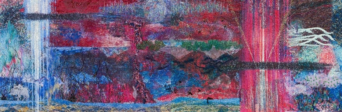 自然と生命の関わりをテーマにした作品群。糸と色で描かれる神話的な風景は、地球上のすべての生命とその繋がりを讃えます。