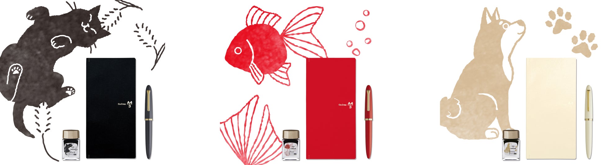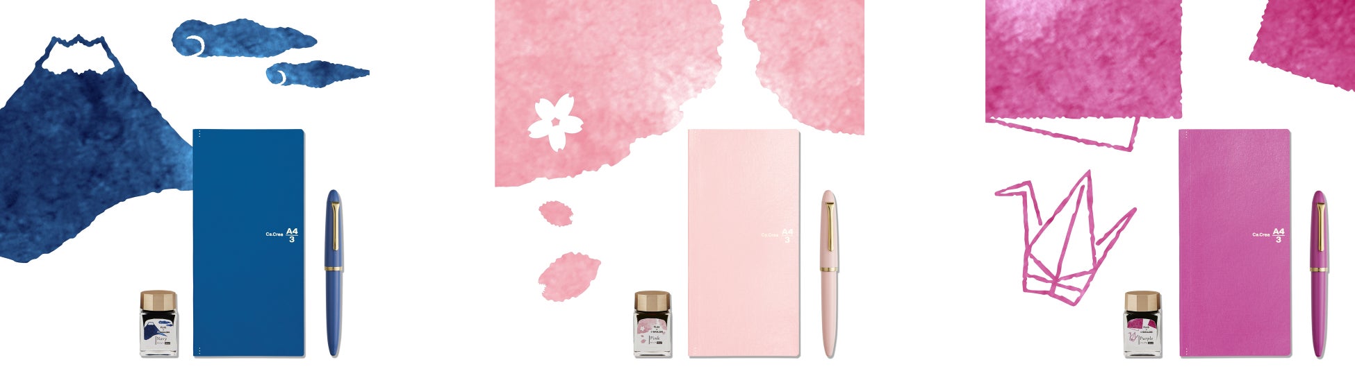 2019年2月に第1弾として「ネイビー」「ピンク」「パープル」の3種類のカラーに、それぞれ「富士山」「桜」「折り鶴」の日本を感じていただけるモチーフを施した「カ.クリエ プレミアムクロス×プロフィットジュニア 限定セット」を発売。同年9月には第2弾となる「ブラック」「レッド」「アイボリー」のカラーに、日本人になじみ深いペット「猫」「金魚」「犬」を施したデザインを発売。さらに2020年3月には日本の春を象徴する“桜”、2021年3月には“夜桜”。2023年12月には“初雪”をテーマにしたセットを発売。万年筆好きの方たちを中心に、大好評をいただいています。