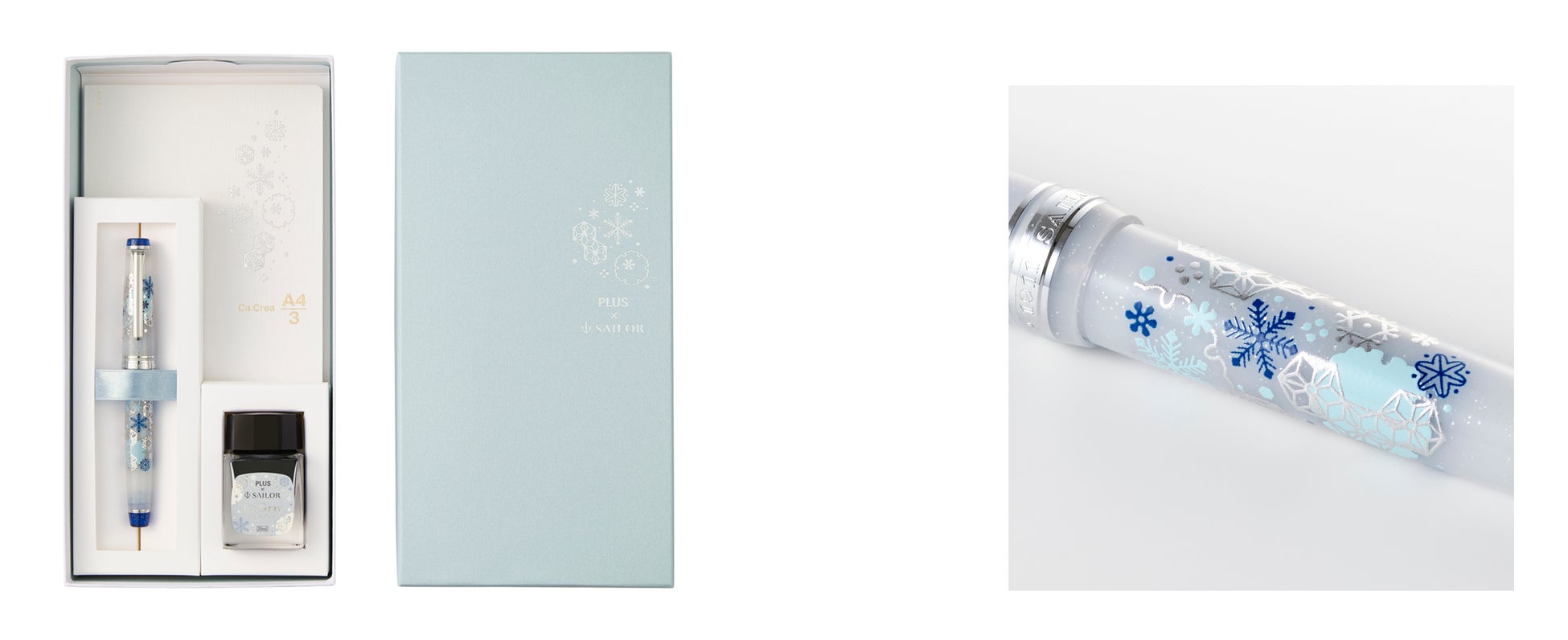 プラスとセーラー万年筆のコラボ企画 第8弾 「カ.クリエ プレミアムクロス×プロフェッショナルギアスリム 海月限定セット」を発売