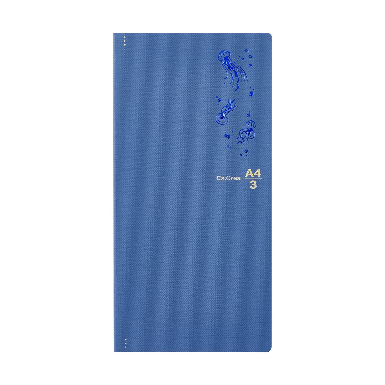 三つ折りにしたA4用紙がすっきり収まるA4×1/3サイズのノートです。マットネイビーの表紙は耐久性に優れた紙クロスを使用。中紙は目に優しいクリーム色で、万年筆のインクが裏抜け・裏移りしにくく、書き心地の良い上質紙を採用。糸かがり製本で、しっかり開きます。