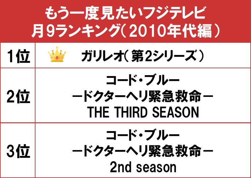 もう一度見たいフジテレビの月9ランキング(2010年代編)