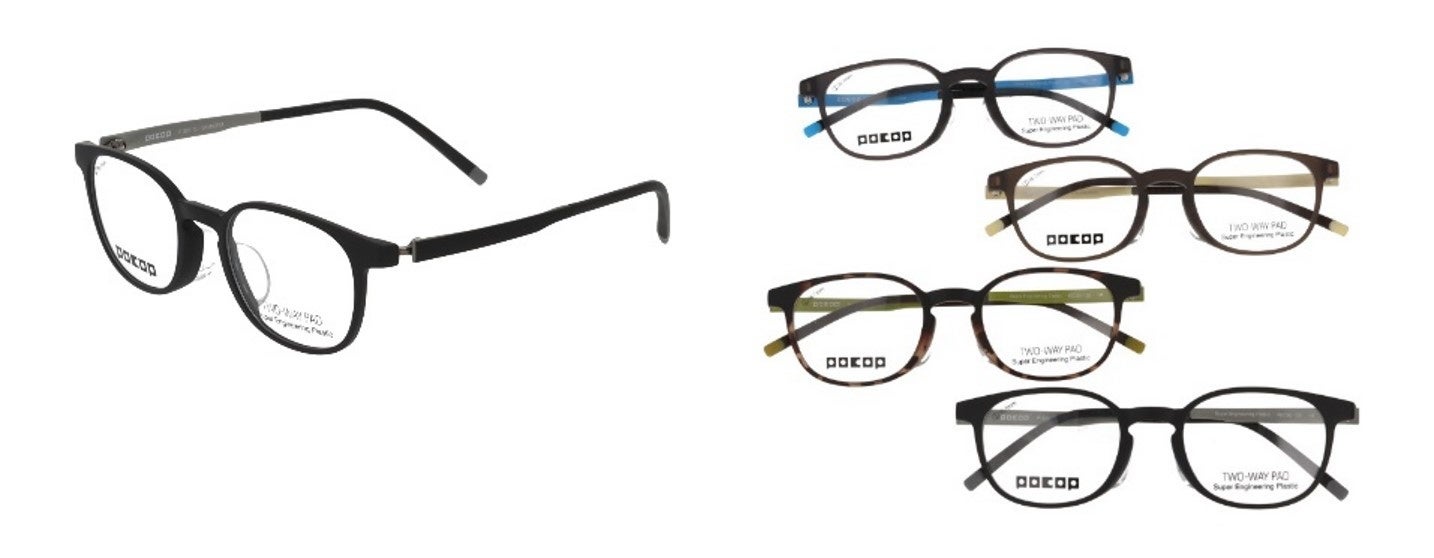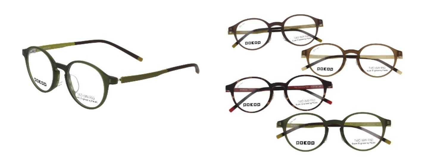 そこで、愛眼の人気シリーズ「POCOP (ポコプ)」より、プラスチックフレームの「プラスチックの存在感や色合い」「鼻あて部のすっきり感や一体感」といったお気に入り要素をキープしながら、「硬くて痛い」「重くてズレる」「変形しやすい」だけでなく、「鼻が合わない」「顔幅が合わない」などプラスチックフレーム特有のストレス要因を解消する「 P-308シリーズ」が開発され、この度発売となります。