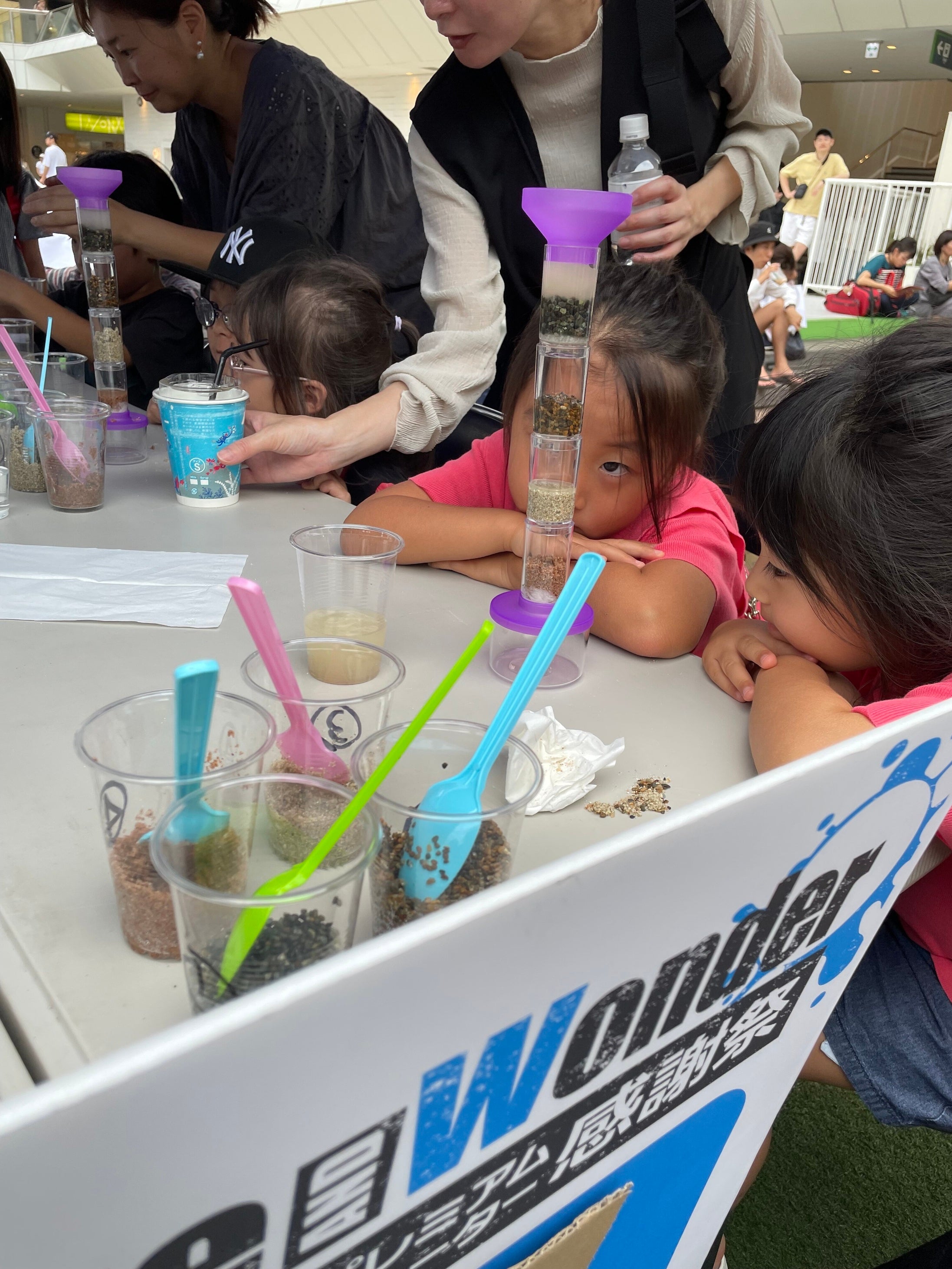 小学生以下のお子さま向けに開催したろ過実験のワークショップでは合計36組の親子にご参加いただき、汚れたお水がきれいなお水になるまでの過程を一緒に学びました。参加者の皆さまはお水がきれいになったのを見て、驚きが隠せない様子でした。