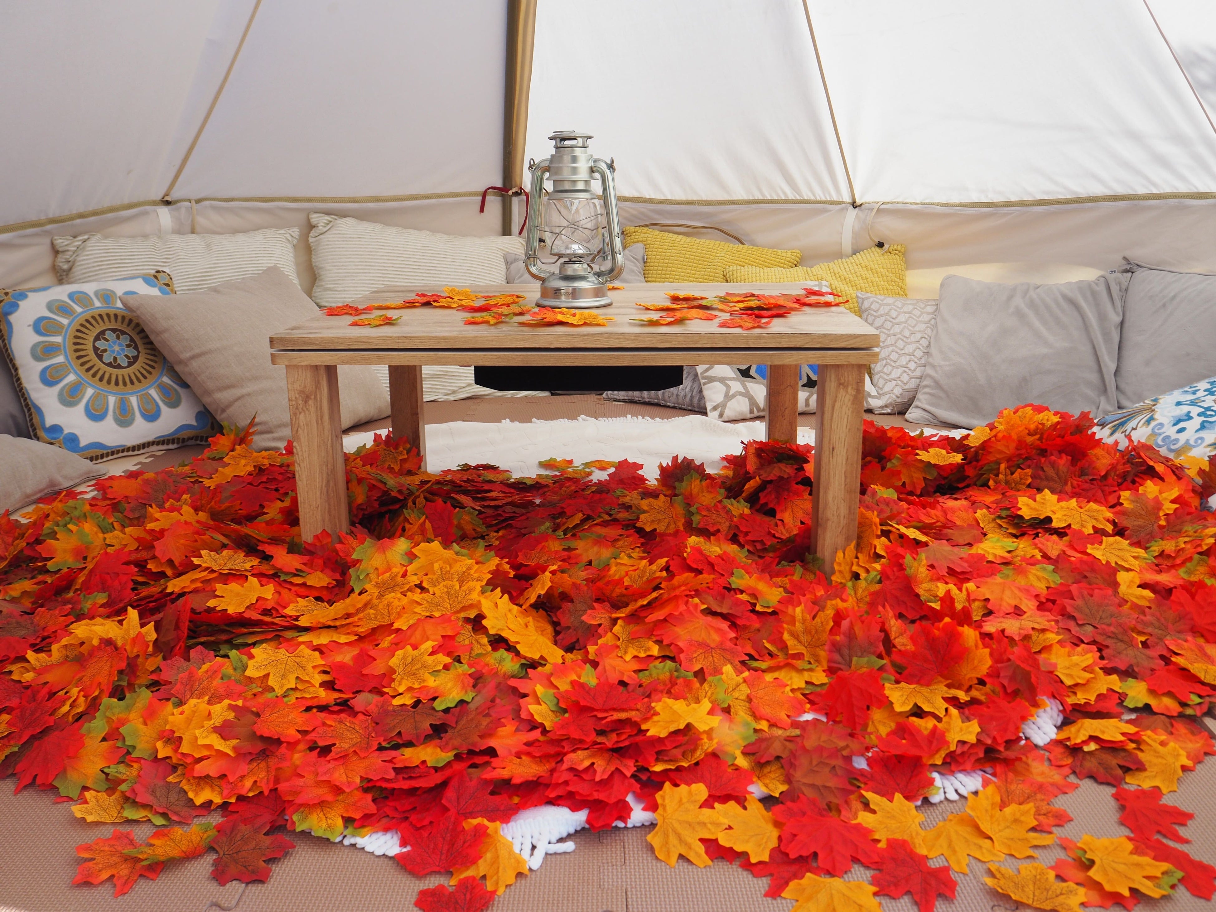 また、日中の自然豊かな風景だけではなく、夜間も秋の雰囲気を楽しんでいただけるよう、屋上に設置したテントに"5000枚"を越えるもみじを散りばめてデコレーション。まるで紅葉ライトアップのように温かく幻想的な雰囲気を感じていただけます。