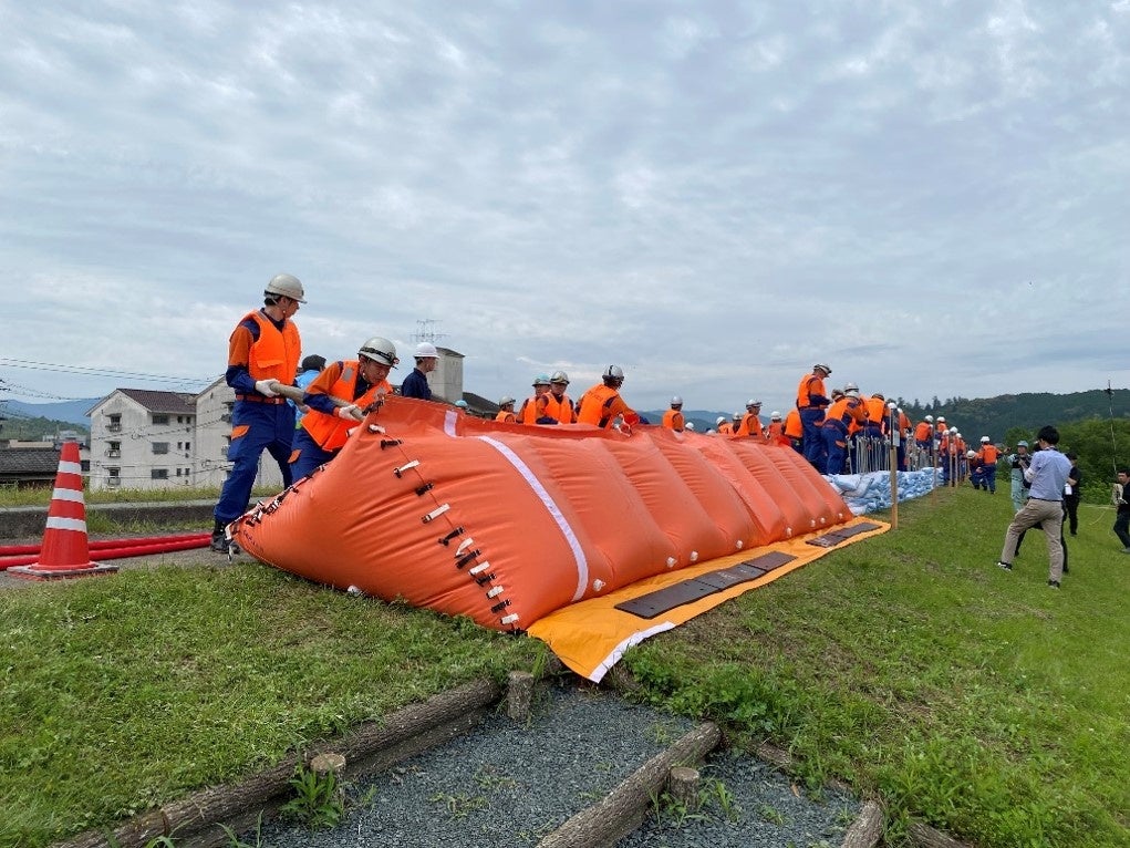 大型膜面構造物(テント構造物)や土木・物流資材などを手がける太陽工業株式会社(東京本社:東京都世田谷区、大阪本社:大阪市淀川区、社長:能村 祐己)は、一般社団法人リバーテクノ研究会®(東京都世田谷区、会長:関 克己)からの要請を受け、水防月間(5月1日~31日・北海道は6月)に合わせて全国11地域で行われる総合水防演習へ参加しています。三角水のう「デルタチューブ®」やハイブリッドエアーテント「マク・クイックシェルター®」、組み立て式簡易止水壁「デルタパネル」などの防災製品を提供し、各地の水防体制強化に向けた演習を支援しています。