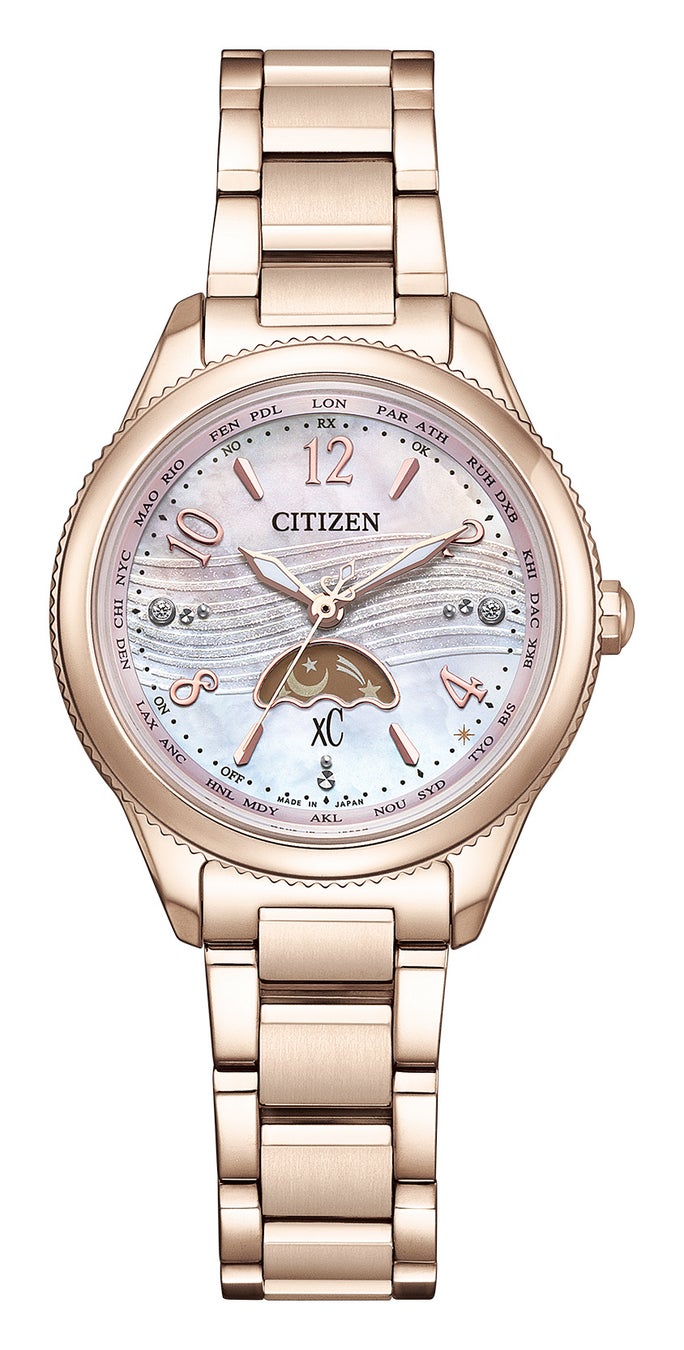 軽量でキズに強く、肌に優しいスーパーチタニウム™※6のケースとバンドには、肌を明るく、美しくみせるシチズンだけのサクラピンク®※7を採⽤。着けたまま手を洗っても安心な5気圧防水、定期的な電池交換が不要の光発電エコ・ドライブを搭載するとともに、世界4エリア(⽇本、中国、ヨーロッパ、北⽶)で電波を受信し、正確な時刻に修正する多局受信型電波時計と充実した機能を備えています。