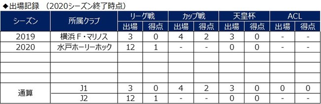 ◆経歴: 横須賀市立神明小学校(FC明浜)-横須賀市立神明中学校(横浜F・マリノスジュニアユース追浜)-神奈川県立金沢総合高校(横浜F・マリノスユース)- 横浜F・マリノス- 水戸ホーリーホック