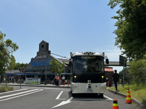 休憩施設内オンデマンド自動運転サービスを想定し、弊社で保有・販売を行っている自動運転小型EVバス車両「Minibus」の提供及び、レベル2での自動運転を行いました。