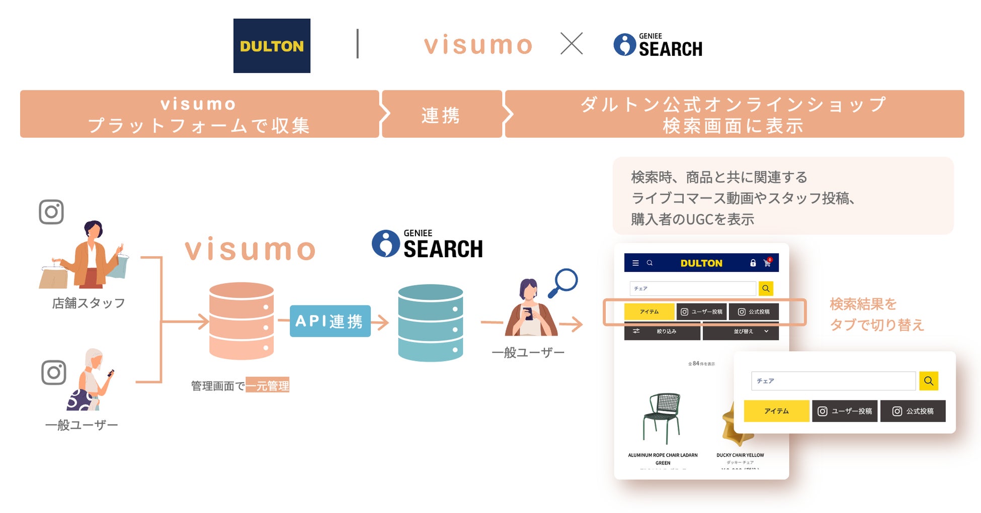 visumo、ダルトンのECサイトでGENIEE SEARCHと連携。サイト内検索でUGCの検索が可能に。