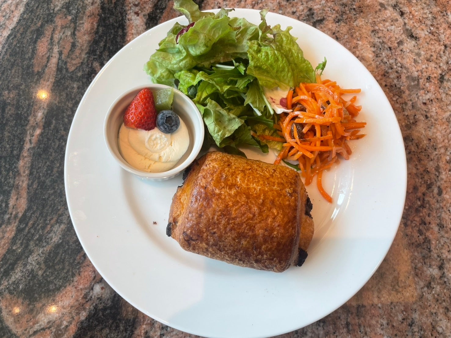 【ミートソーストースト、ベーコンエッグトースト、バタートースト(蜂蜜&ジャム)、クロワッサン、パン・オ・ショコラ】