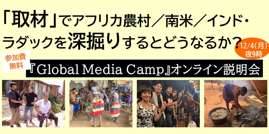 【12/4開催】「取材」でアフリカ農村/南米/インド・ラダックを深掘りするとどうなるか? 『Global Media Camp』オンライン説明会