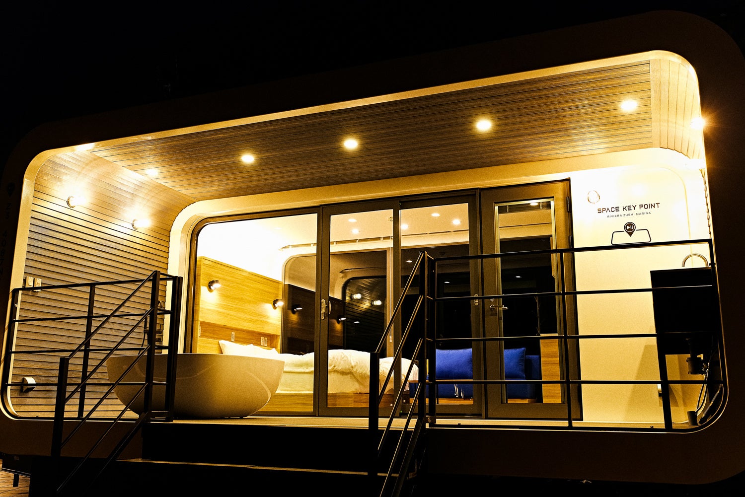 神奈川県三浦市のリビエラシーボニアマリーナ内に4棟のSPACE KEY POINT、1棟のコテージタイプの客室を配置した「SPACE KEY POINT リビエラ シーボニア マリーナ」