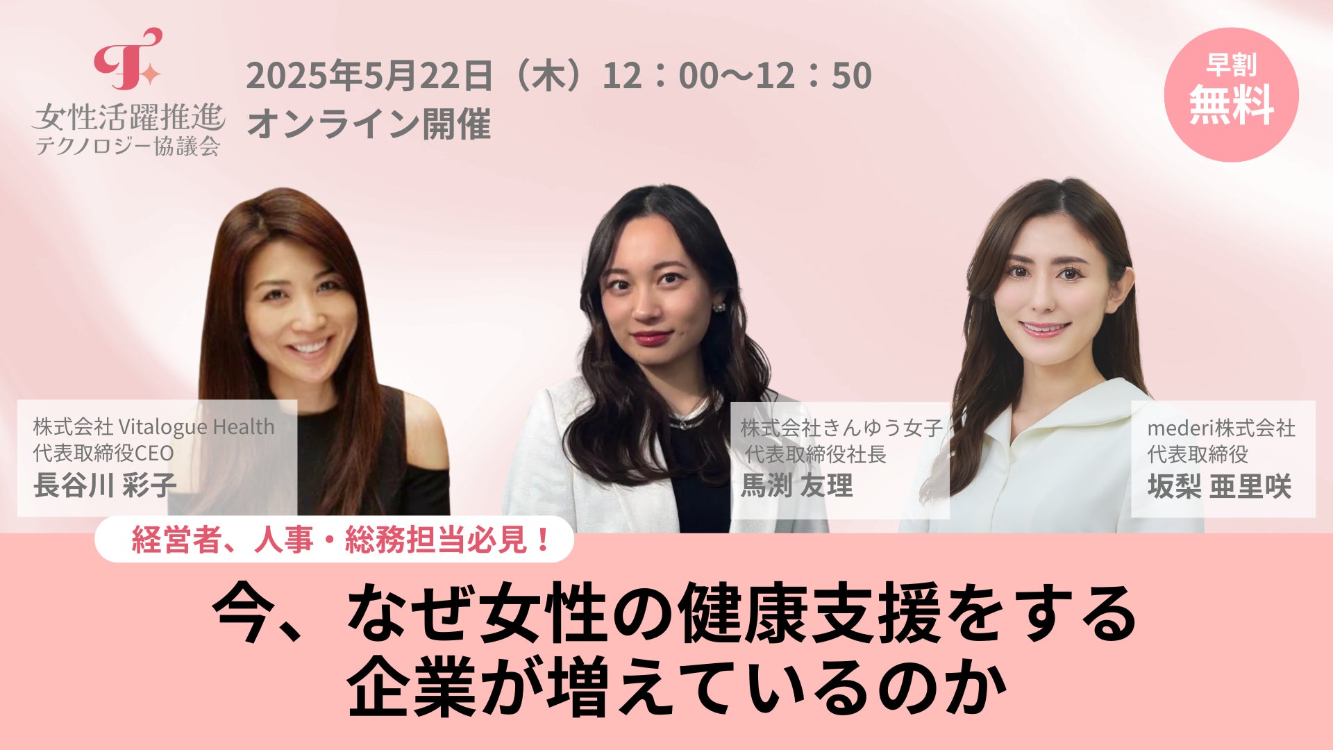 女性のキャリアやライフステージに寄り添う取り組みが、企業の持続的な成長と働きやすい職場環境の実現に直結することが明らとされてきている昨今において、フェムテックをはじめとするテクノロジーの力を活用した「女性活躍推進」の重要性が高まっています。