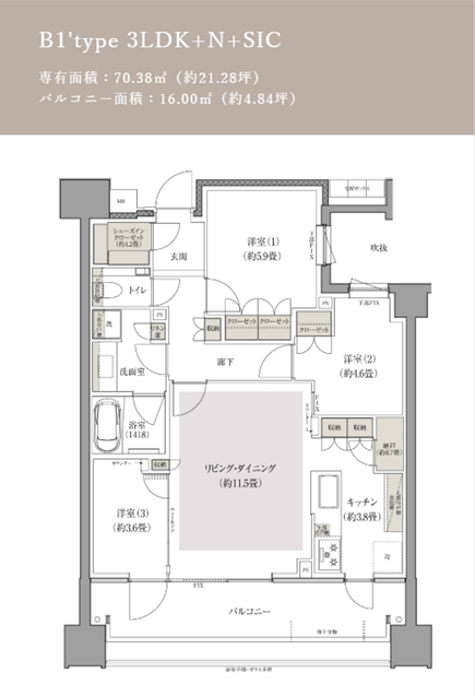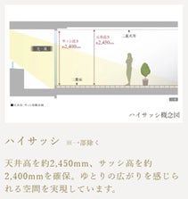 本物件は、高いセキュリティ性とプライバシー性を確保する「内廊下」設計を採用しています。プランは、3LDK ・70㎡超を中心とした全15タイプです。高さ約2,400mmのハイサッシを採用しているため、室内からの視界を広げ、寛ぎのひとときに清爽なゆとりを描きます。また、LDKの内蔵梁により室内に梁型が出にくいすっきりとした居住空間としています。居住階には各住戸専用の宅配ロッカーを完備。邸宅としての美意識を宿した空間設計にしています。
