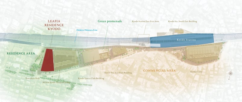 本物件は、小田急小田原線「経堂」駅から徒歩6分に位置し、「新宿」駅まで14分と都心へのアクセス性に優れた立地です。約43,000㎡の複合商業施設エリアである「経堂テラスガーデン(2011年完成)」内に誕生し、「経堂」駅徒歩圏で20年ぶりとなる大規模プロジェクト(※1)です。詳細については今後公式サイトにて順次公開予定です。
