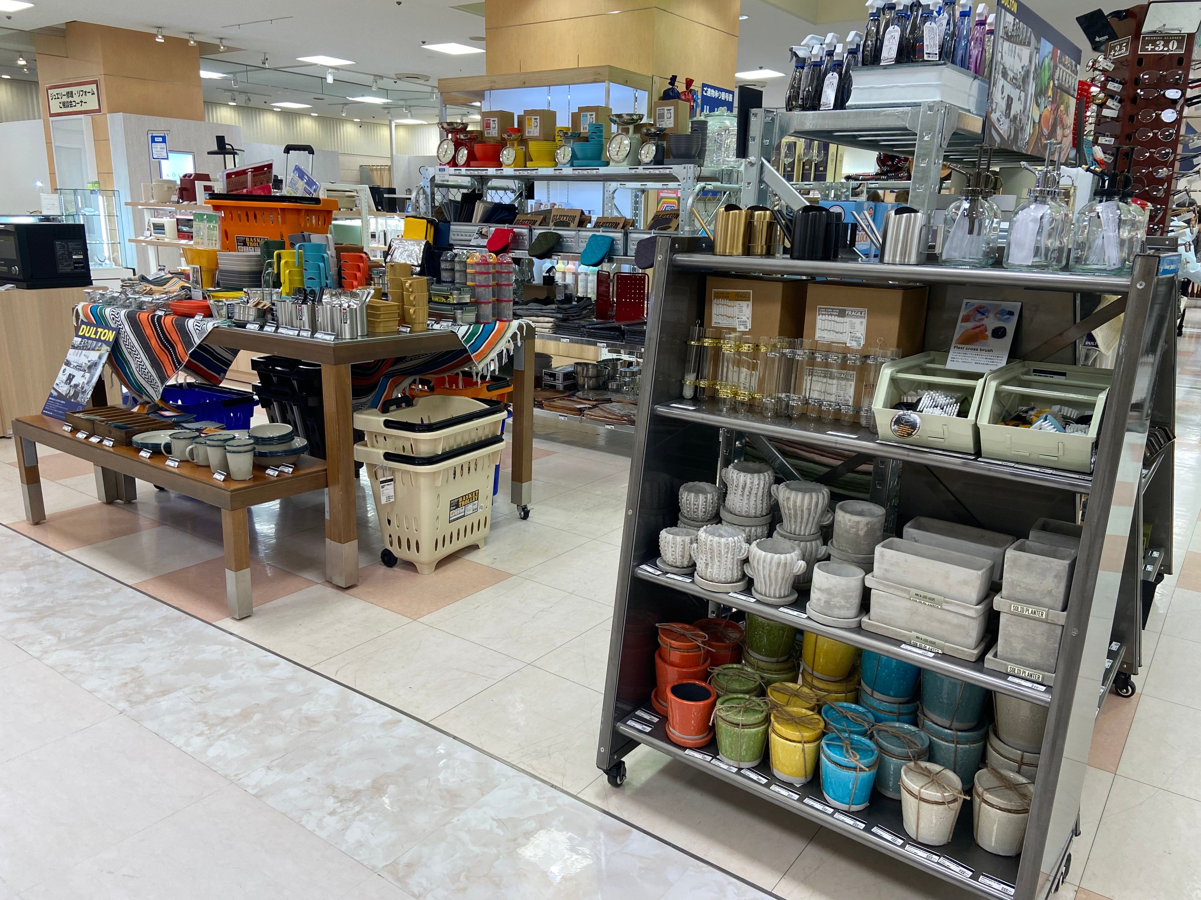 キッチン、リビング雑貨の自主編集コーナーに、好調なキッチン雑貨を拡充します。7階生活雑貨売場にて販売していた家電「バルミューダ」「ブルーノ」「レコルト」などを移設するほか、新たにインテリア雑貨メーカー「ダルトン」、吉祥寺の「四歩」(4/14オープン)を導入します。