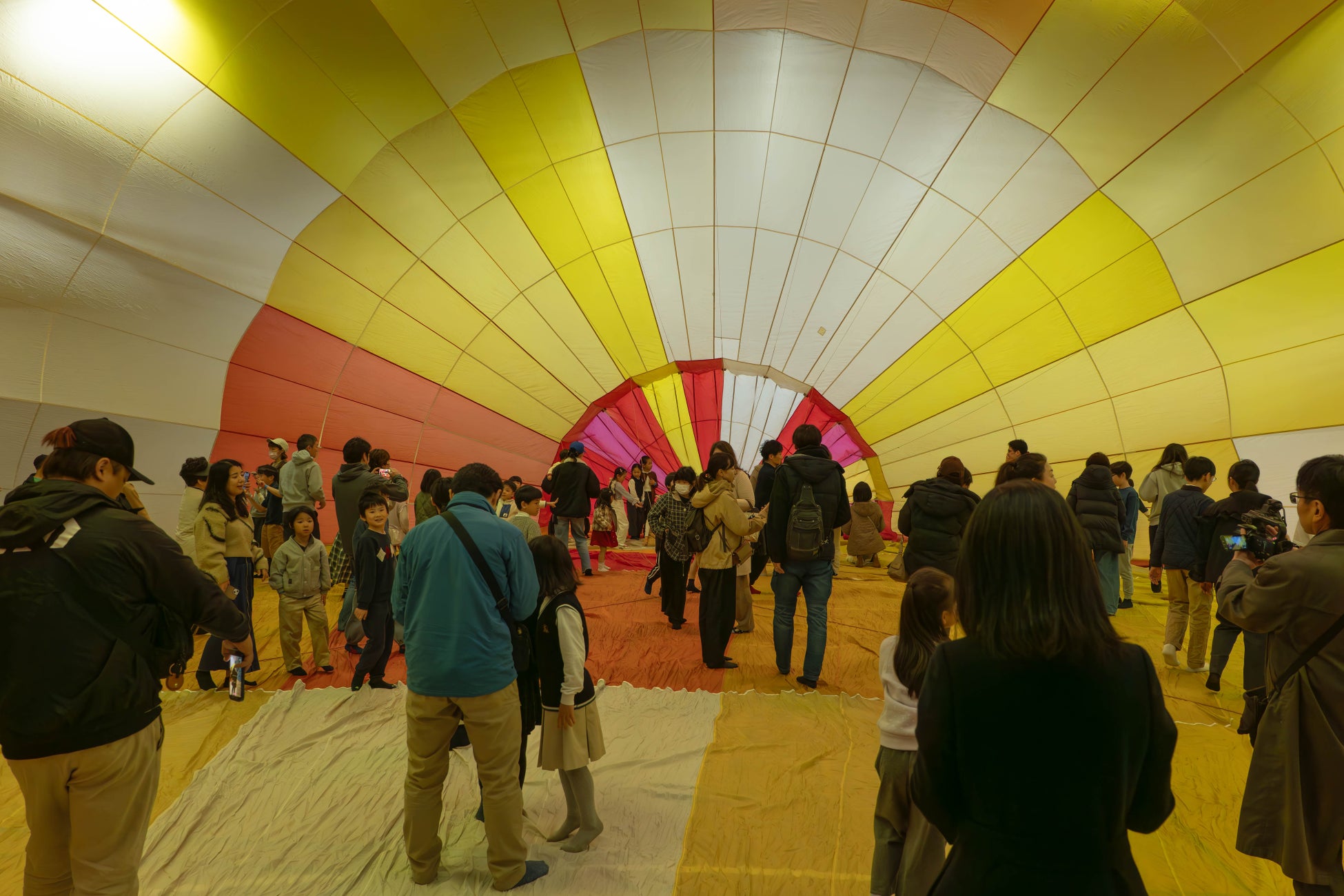 今朝は、約20名のこどもたちが係留を体験し、そして後半は、巨大な球皮に触れたり、中に入ったり、手触りや音の反響など、熱気球を五感で感じる時間になりました。この一日が、空を見上げて心がほどけるきっかけになればうれしいです。そして、佐賀市といえばバルーンだと、皆さんの記憶に残れば幸いです。
