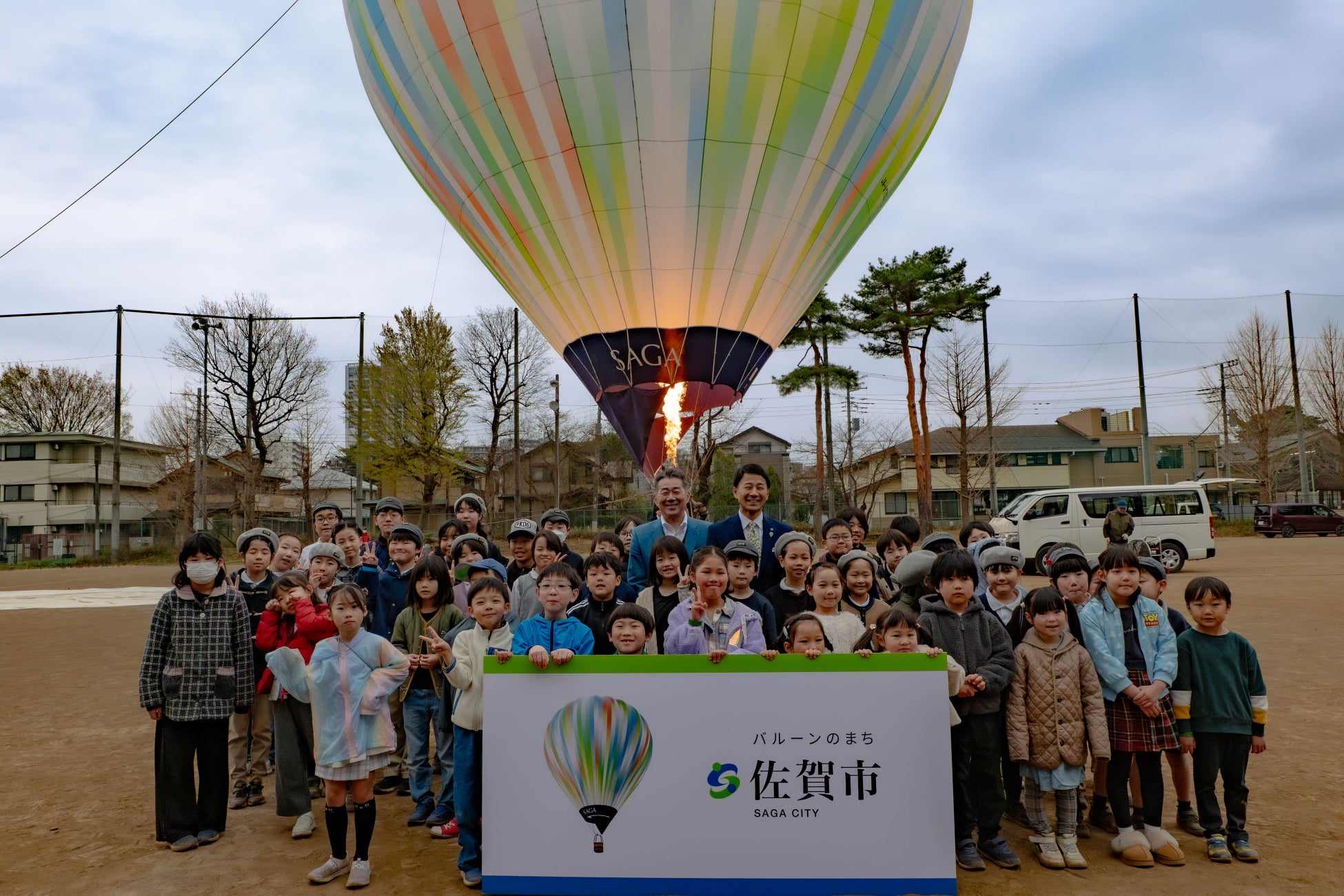 佐賀市では現在、市内の全小学生が卒業までに一度はバルーンを体験する「空飛ぶ体験あたりまえ化計画」を進めています。今年度は、40校・1万1817人のこども達に係留等の体験を届けました。