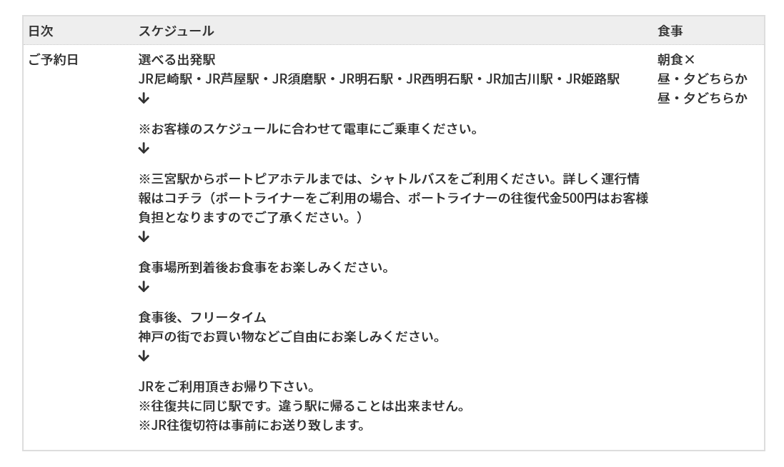 - 選べるポートピアホテル日帰りパックについて