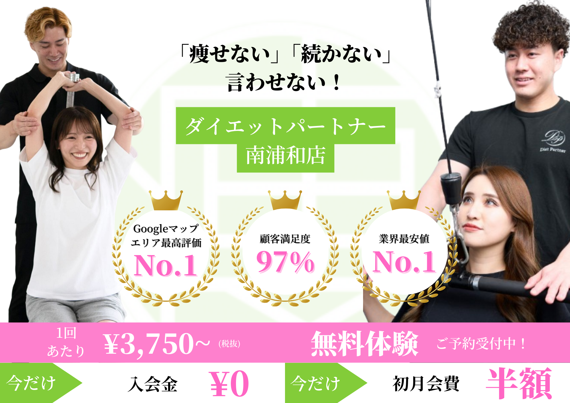 南浦和に『安さ◎』『効果◎』『質◎』のパーソナルジム「ダイエットパートナー 南浦和・浦和店」がオープン。さいたま市で最高顧客満足度を目指します。初心者・女性に優しい環境を提供しております。