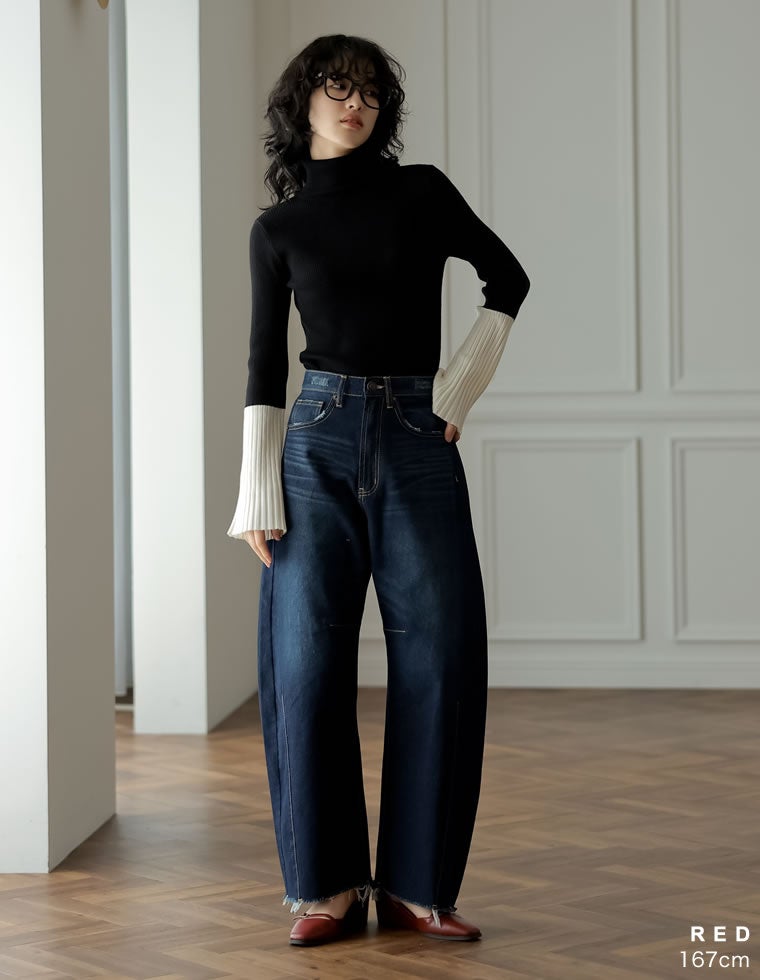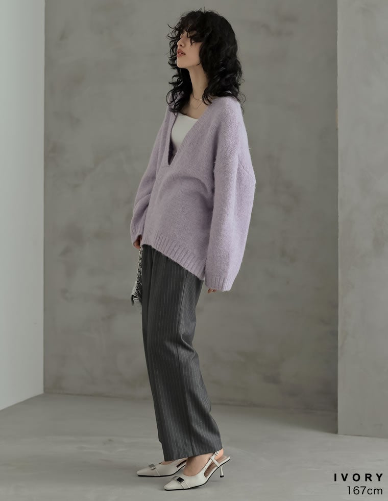 スキニーなど細身のボトムをインしたり、フェミニンなスカートやワンピースの外しアイテムとしてもおすすめ。