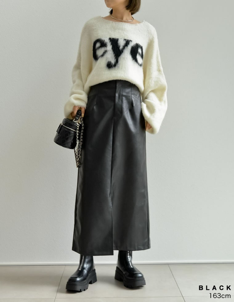 程よくシボ感のあるフェイクレザーも、モードなポイントに。
