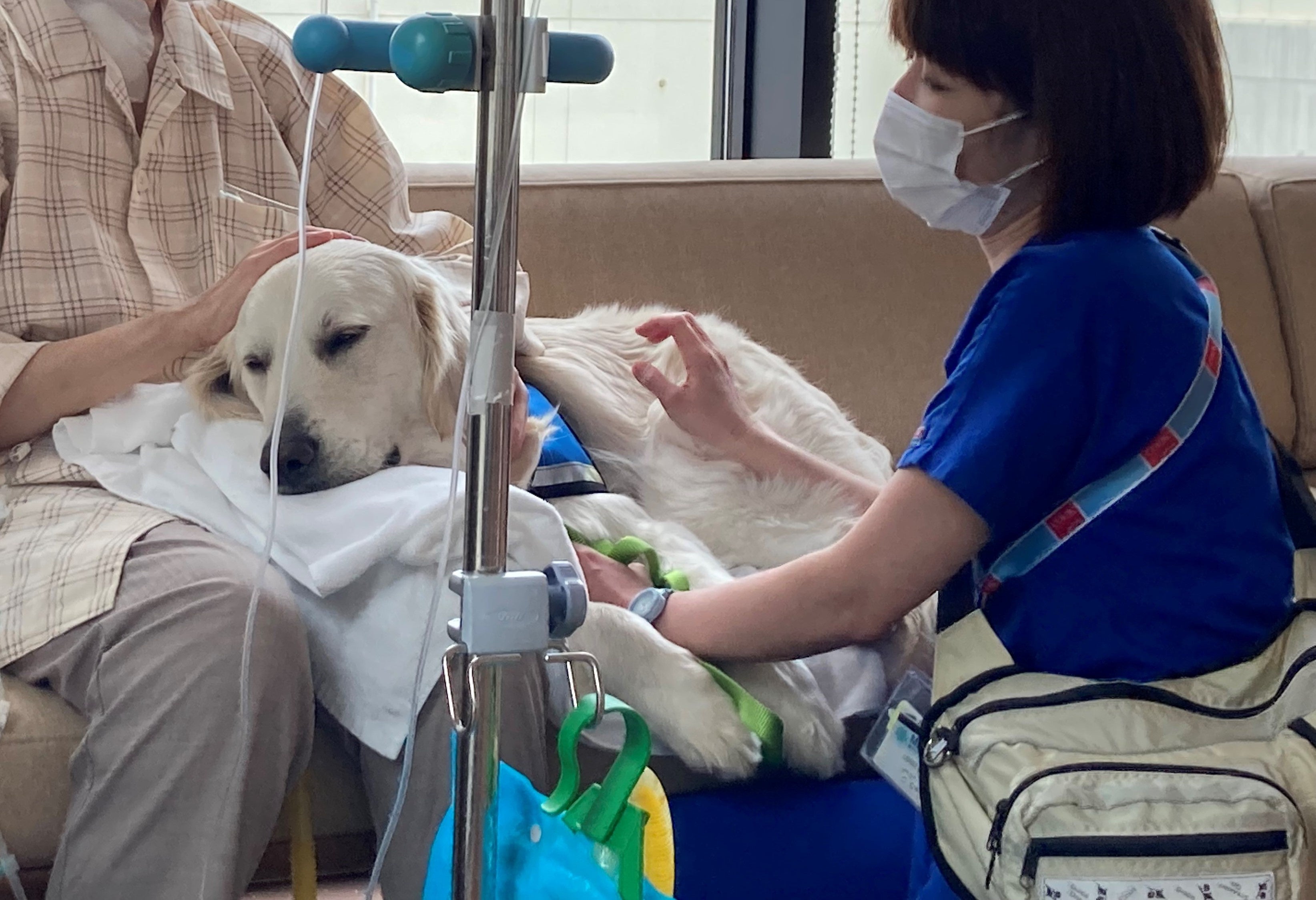 左から溝部看護師、ハク、兒島看護師長