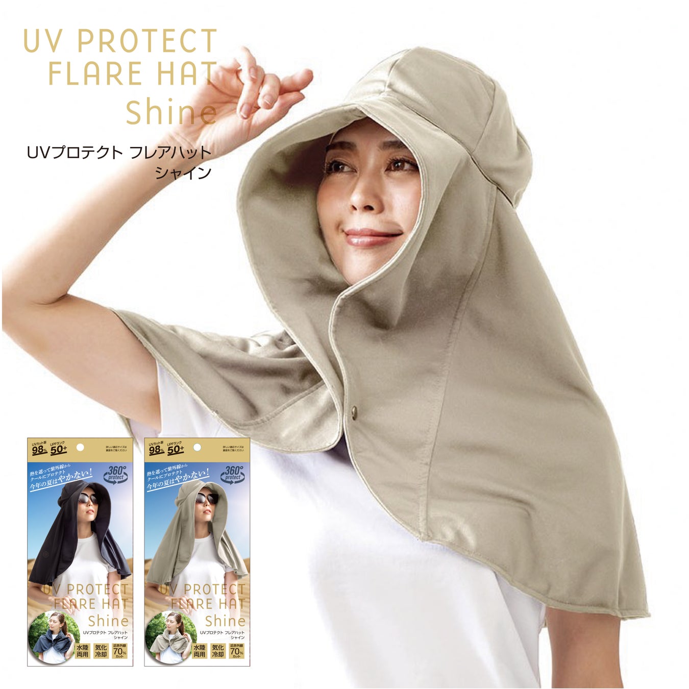さらにシリーズ商品、UVプロテクト フレアハット シャイン、UVプロテクト サファリハット シャインからもブラックに続きグレージュが新色として追加。