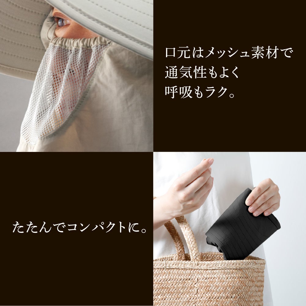 シチュエーションに合わせてスタイルを変えて、まぶしい日差しや照り返しから顔・首まわりをガード。