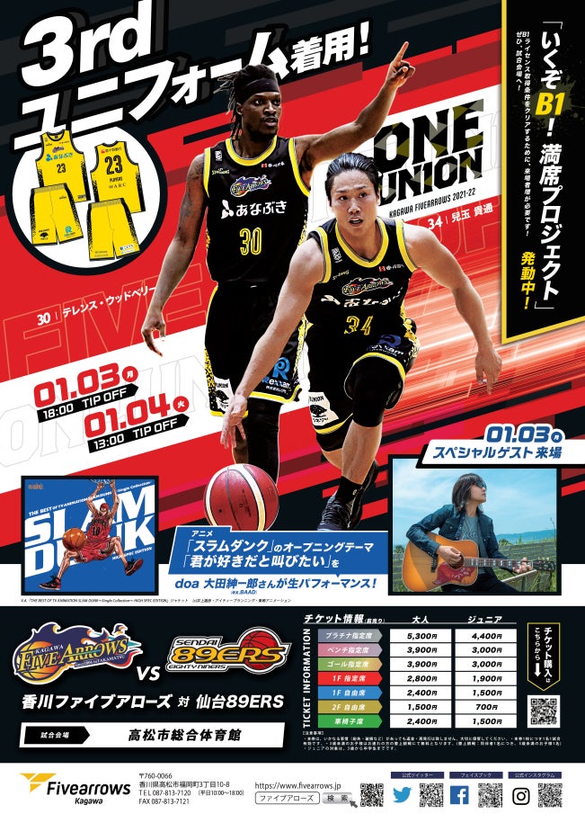 2022年1月3日(月)4日(火)仙台89ERS戦は、待ちに待った高松市総合体育館での開催となります。悲願のB2優勝・B1昇格を達成するためにも、より多くのブースターの皆さまと共に戦いたいと考えています。