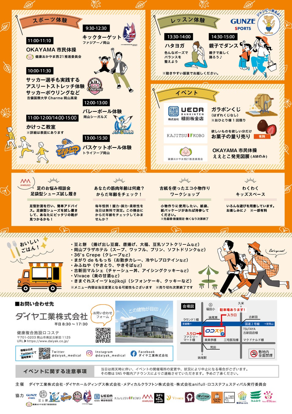 医療用品メーカーのダイヤ工業株式会社(本社:岡山県岡山市 代表取締役:松尾浩紀)主催の第7回ロコステ フェスティバル2022が2022年10月15日(土)に健康複合施設ロコステ(岡山県岡山市南区古新田1125)にて開催されます。