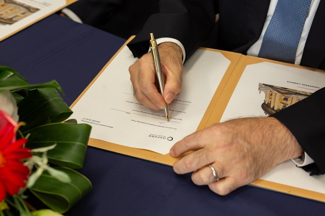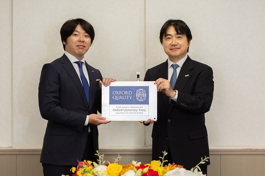 左 株式会社京進 代表取締役社長立木康之 右 オックスフォード大学出版局株式会社代表取締役社長中村清和様