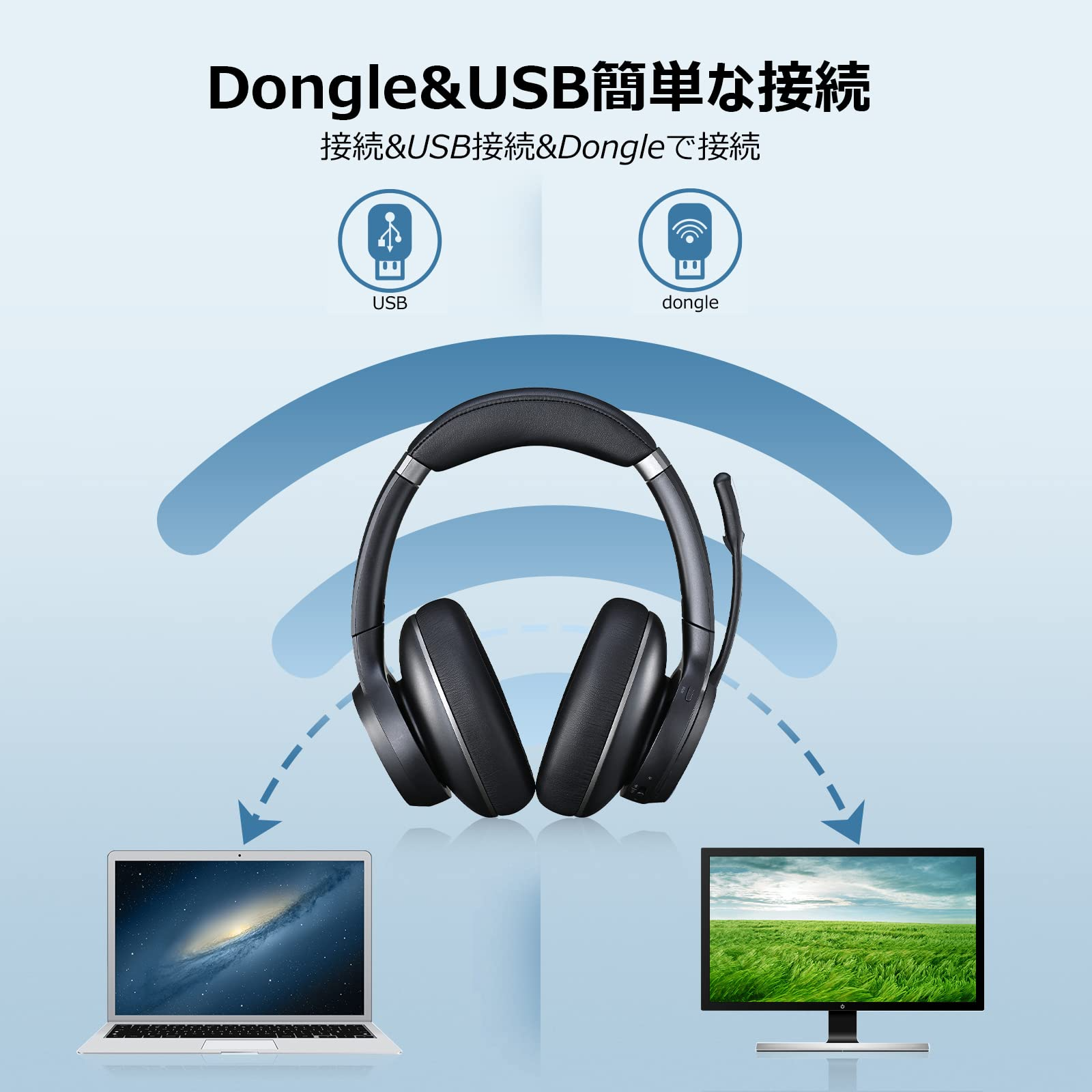 EMEETヘッドセット HS150は、USB接続がもちろん、Bluetooth5.0とドングルで安定的で快適なワイヤレス接続ができ、PC、デスクトップ、タブレット、携帯電話など様々なデバイスで利用可能である。Bluetoothの場合、2台のデバイスと同時に接続でき、簡単に切り替えることもできる。また、EMEETヘッドホンは大容量バッテリーが内蔵されているため、最大48時間通話利用可能である。さらに、1.5h充電した後、最大6時間の使用が可能ので、電源が切れる心配がいらなく、通勤や出張にも活躍できる。