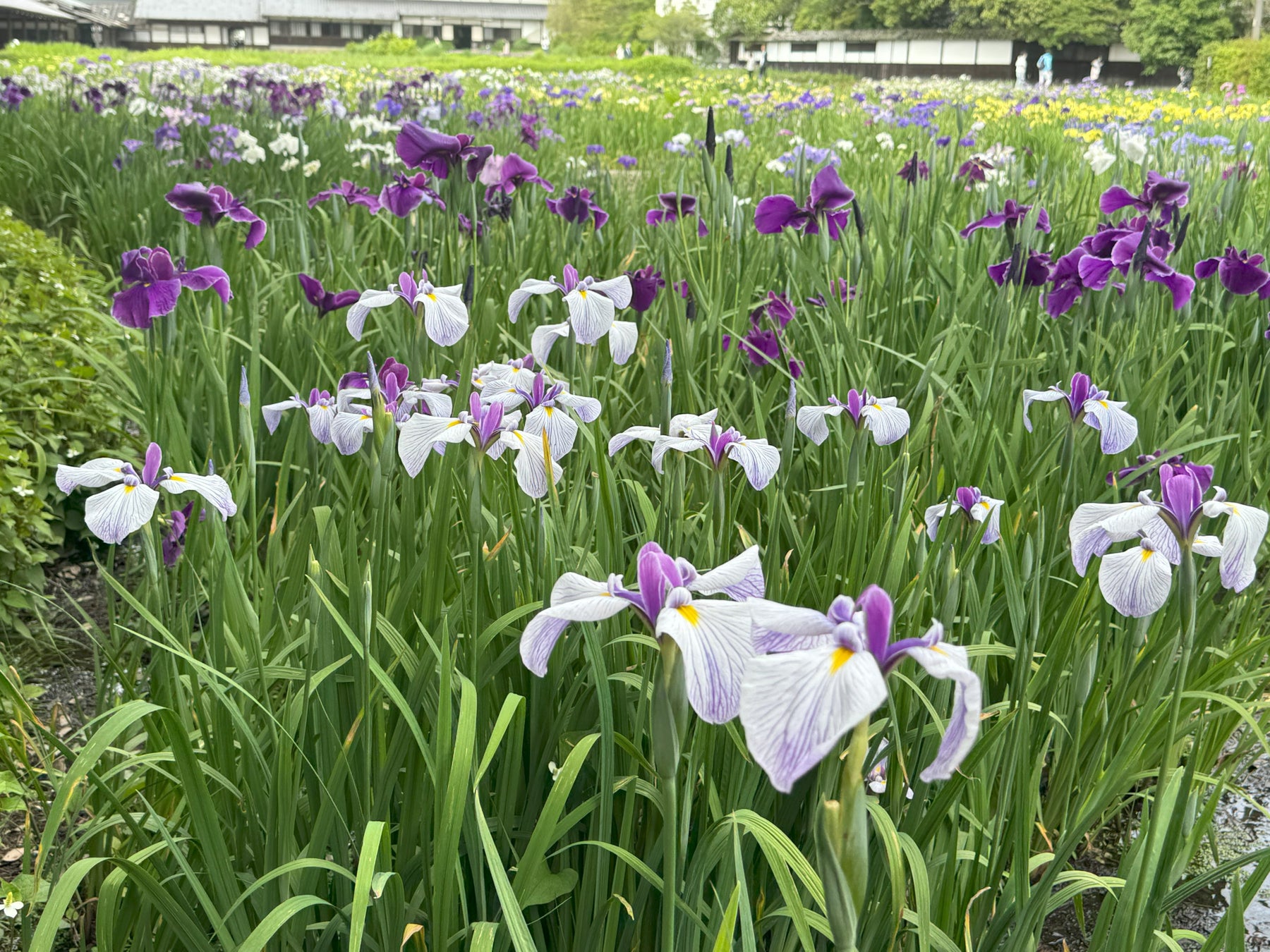 前回の花だよりで「今年は2~3週間ほど早めです」とお伝えした通り、6月を待たずに地植えの花菖蒲も満開を迎えました。