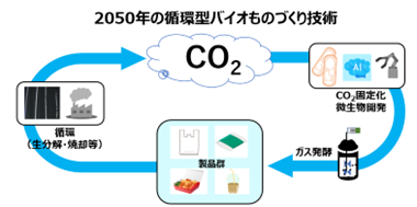 本プロジェクトは、2020年12月25日(2021年6月18日改訂)に経済産業省が関係省庁と策定した「2050 年カーボンニュートラルに伴うグリーン成長戦略」におけるカーボンリサイクルの実現に貢献するものです。4社がこれまで培ってきた知見や技術を結集し、CO2 を原料として生分解性バイオポリマーを生産する微生物の開発および生産プロセスの技術開発を行い、化石資源に依存しない循環型バイオものづくり技術の実現を目指します。