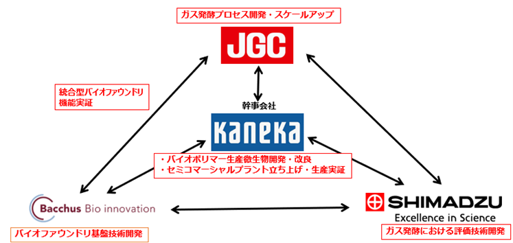 株式会社カネカ、株式会社バッカス・バイオイノベーション、日揮ホールディングス株式会社、株式会社島津製作所