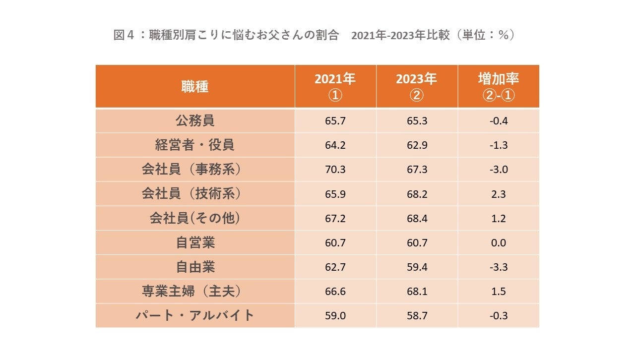 肩こりを抱えるお父さんの職業は、事務系からその他の職種へと拡大している