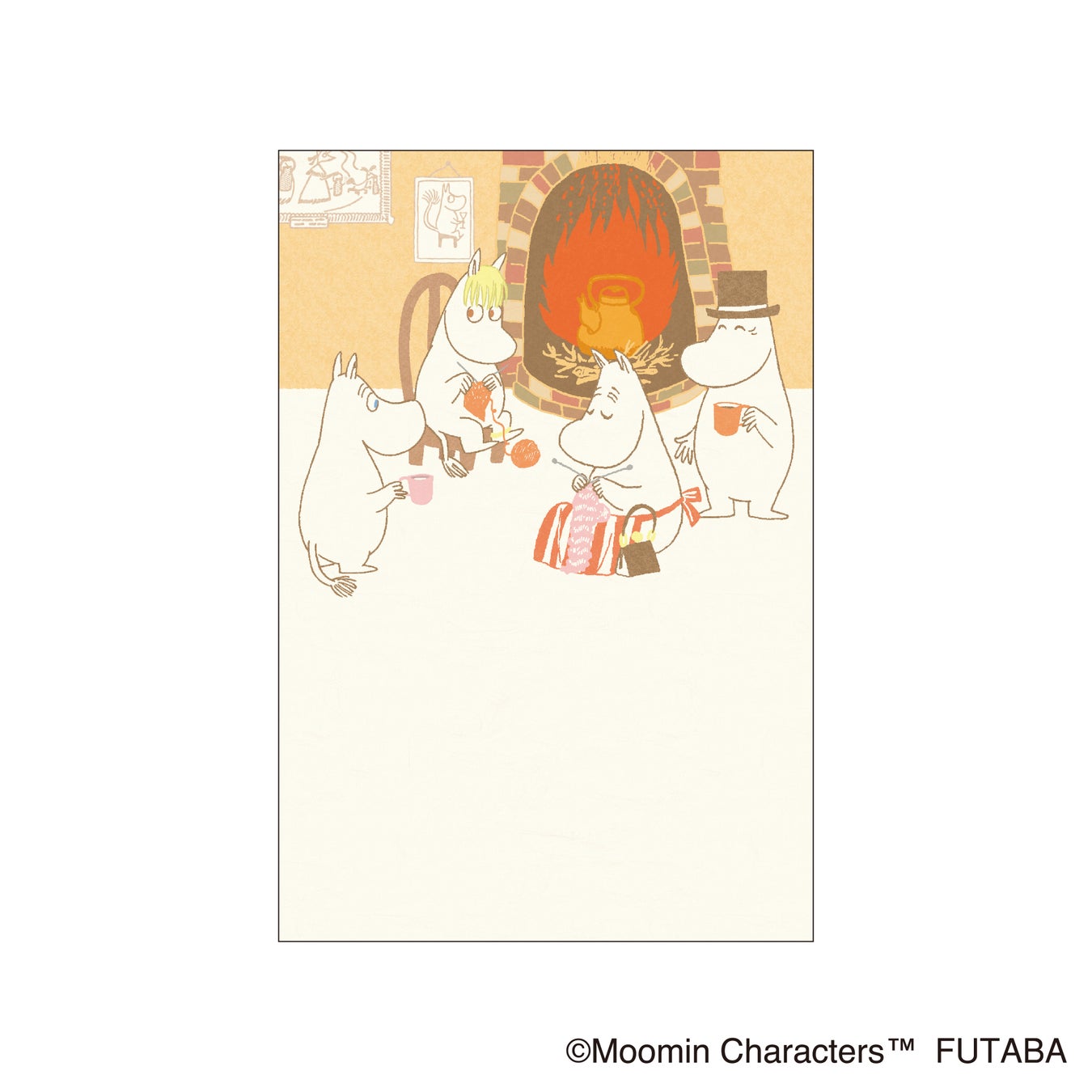 雪景色や暖炉で暖まるムーミンたちが描かれた絵はがきで冬のご挨拶にいかがでしょう?