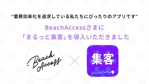 株式会社ハックルベリー(東京都世田谷区、代表取締役社長:安藤 祐輔、以下「ハックルベリー」)が提供する、固定費0円、完全成果報酬型の集客アプリ「まるっと集客」アプリが、日本で企画デザインされたオリジナルサーフブランド「ビーチアクセス」様のオンラインショップ(https://beachaccesssurf.com/)に導入されました。