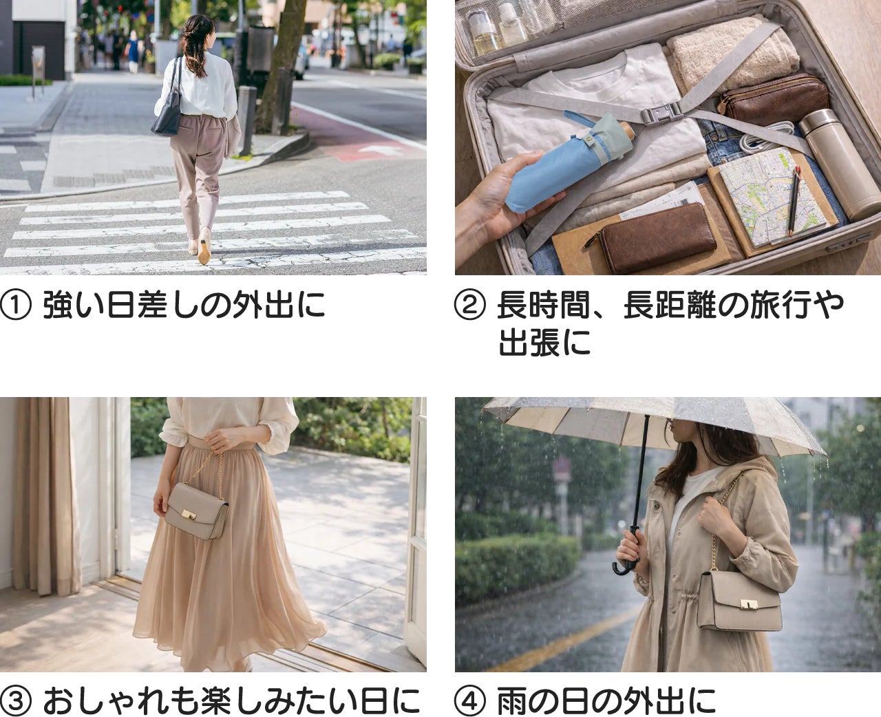 対応シーン:晴れ・曇り・雨の日(晴雨兼用、耐水圧約25,000mm)