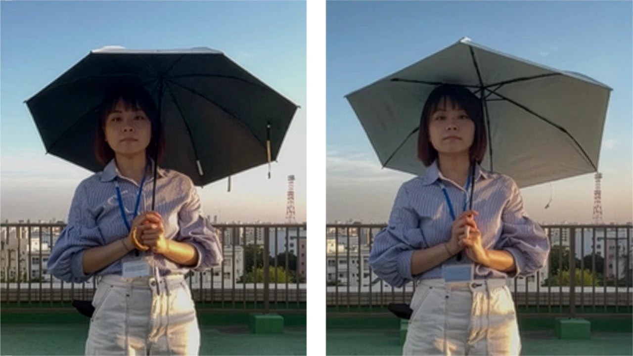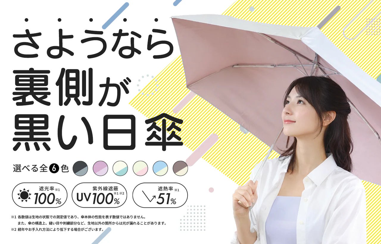 『新商品』黒くないのに遮光率・UVカット率100%!レフ板効果で顔色明るく、猛暑も雨の日も快適な新発想日傘『Tsukumo Colors(ツクモ カラーズ)』正式発売!