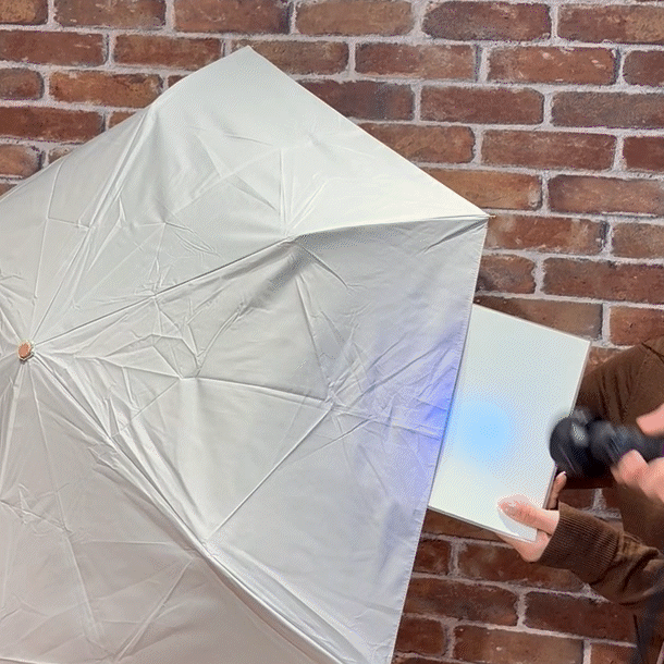 ※遮熱性試験(JIS L 1951)による生地の試験結果であり、製品としての性能を保証するものではありません。また、傘の構造上、縫い目や刺繍部分など、生地以外の箇所からは光が漏れることがあります。