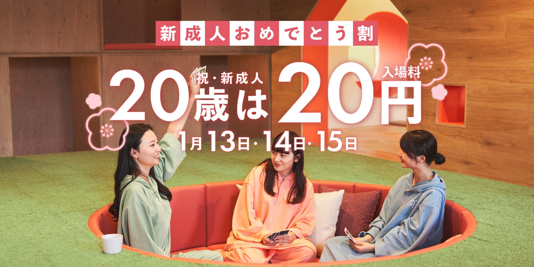 【期間中何度でも20歳は20円!】おふろcafé yusaで成人の日を祝う特別キャンペーン『新成人おめでとう割』を1月13日(月祝)より開催。