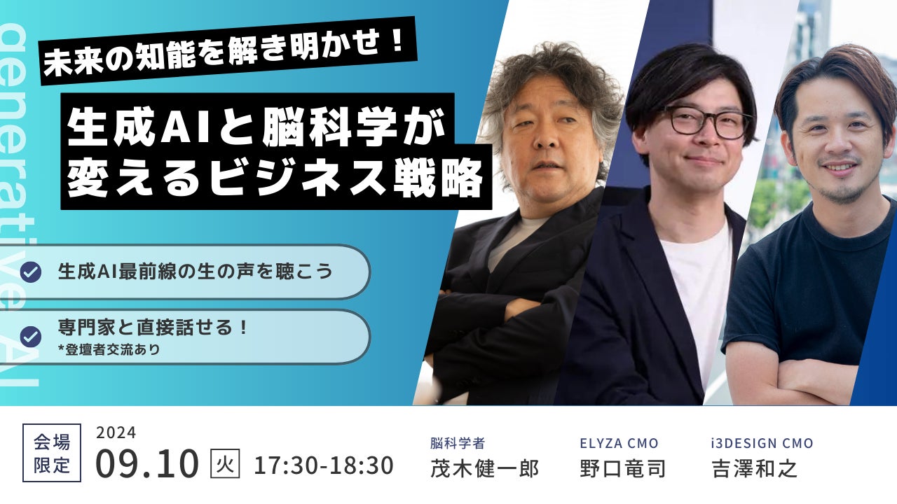 【脳科学者 茂木健一郎氏 × 株式会社ELYZA × 株式会社アイスリーデザイン】生成AIと脳科学が変えるビジネス戦略 〜未来の知能を解き明かせ〜