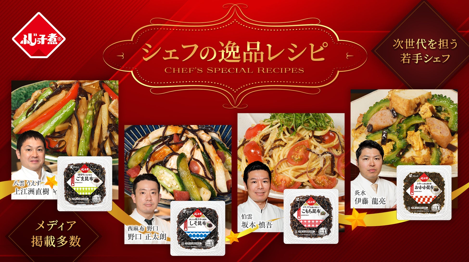 フジッコ株式会社(本社:神戸市中央区/代表取締役社長執行役員:福井正一)は、夏場に向けて、これからの日本料理界を担う若手シェフたちが考案した「ふじっ子煮」シリーズのアレンジレシピを提案いたします。レシピ内で使用されている「ふじっ子煮 ごま昆布」「ふじっ子煮 しそ昆布」「ふじっ子煮 こもち昆布」「ふじっ子煮 おかか昆布」の4商品のパッケージデザインを変更して2025年7月1日(火)より販売いたします。