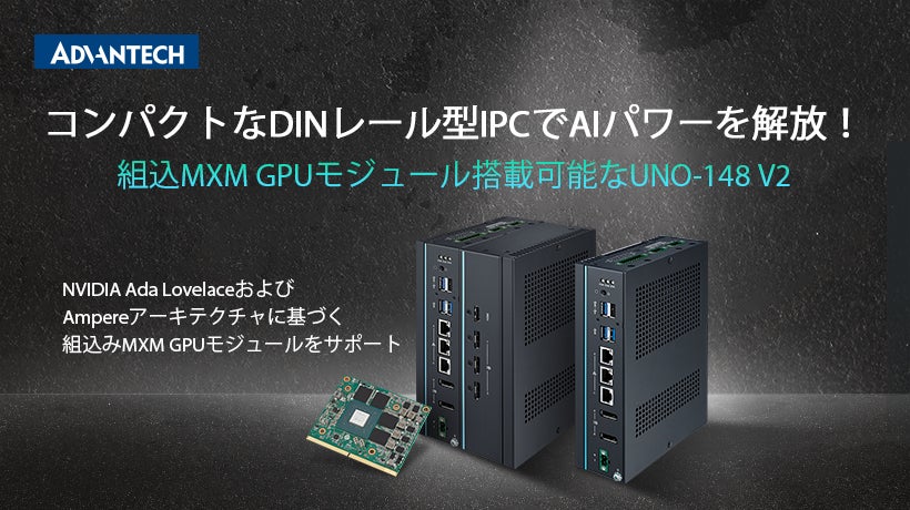 アドバンテック株式会社(Advantech Co., Ltd. 本社:台湾台北市/日本法人:東京都台東区、以下 アドバンテック)は、新しいDINレール型オートメーションコントローラー「UNO-148 V2」の発売を発表しました。この新製品は、第13世代Intel® Core™プロセッサと、NVIDIAのAda LovelaceおよびAmpereアーキテクチャに基づくMXM GPUをサポートする拡張キットを組み合わせた先進的な設計を採用しています。リアルタイム制御やAI駆動の自動化を必要とする幅広い分野で、次世代のエッジAI技術を実現します。