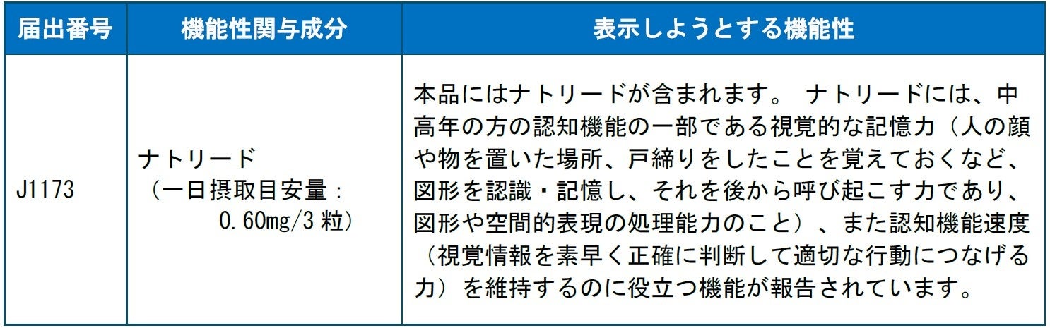 消費者庁HPにおいて、「快脳冬虫夏草」(機能性関与成分:ナトリード)の機能性表示食品の届出が公開されました。