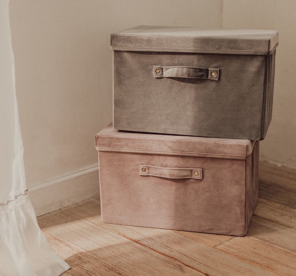 ベロア調収納BOX (グレー:商品コード5840281、ローズ:商品CD5840282) 各999円